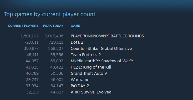 Steam Stats Snapshot 21st June 19 1 Dota 2 2 Pubg 3 Csgo 4 Underlords 5 Seige Resetera