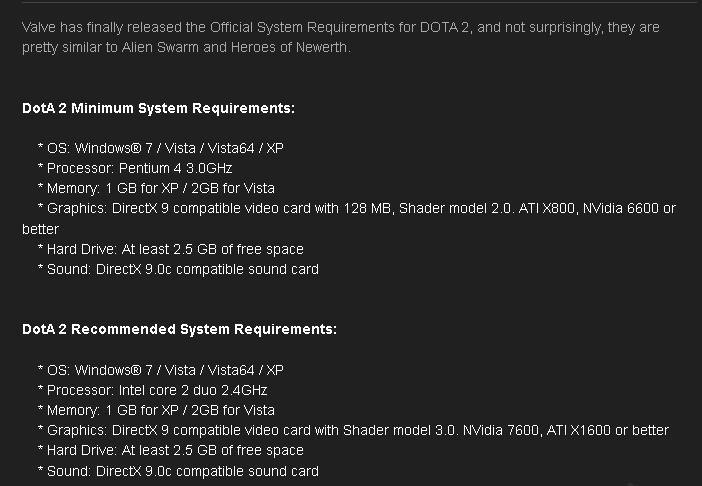 Dota 2 Guides System Requirements For Dota 2