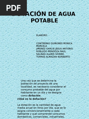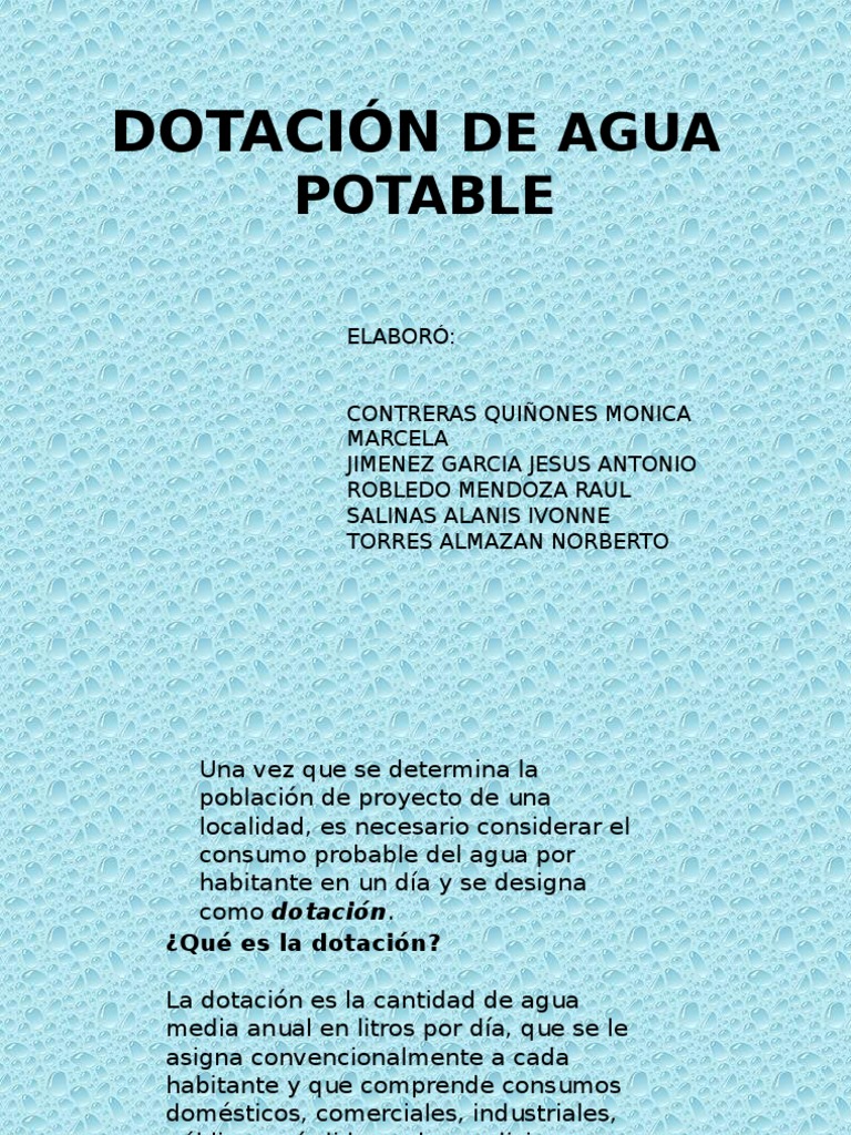 Dotacion De Agua Dotacion Se Entiende Por Dotacion La Cantidad De Agua Que Se Asigna Para Cada Habitante Y Que Incluye El Consumo De Todos Los Servicios Ppt Descargar