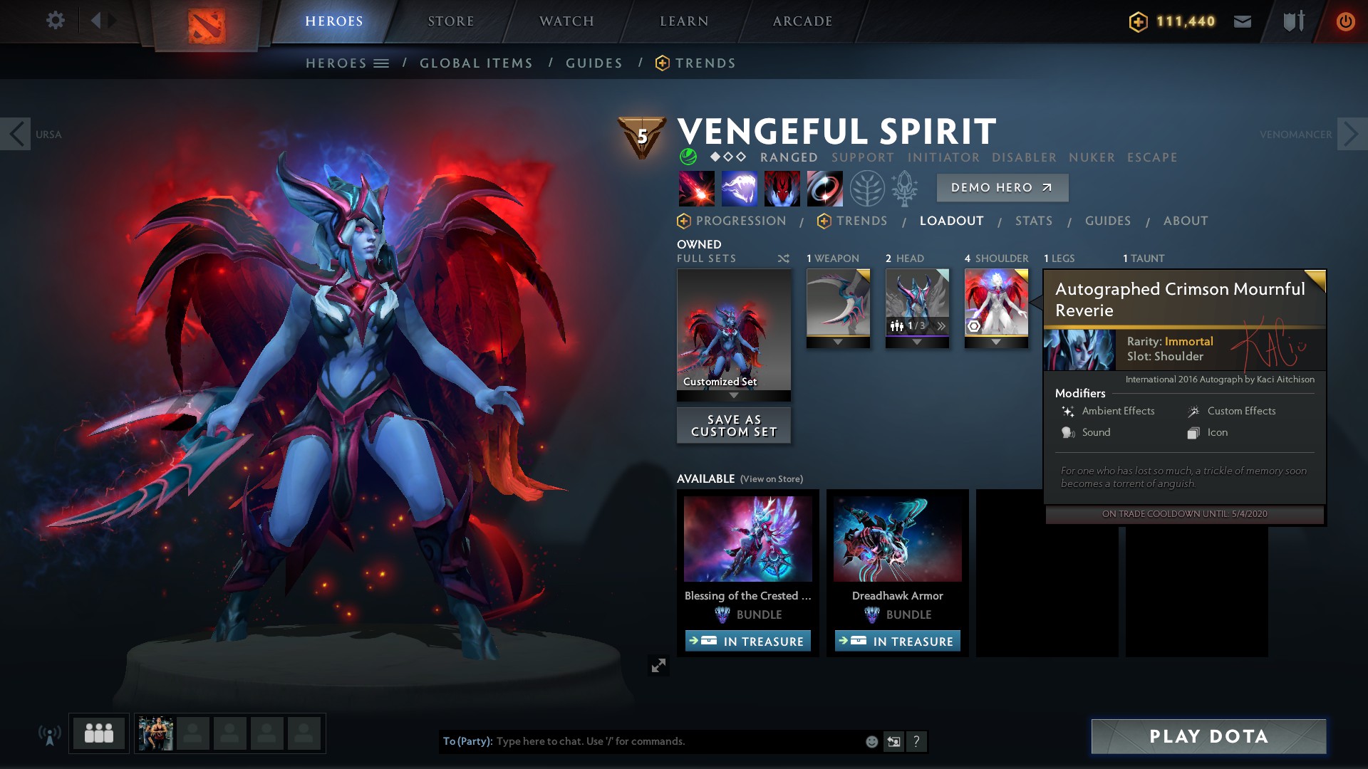 Dota 2 Vengeful Spirit Mournful Reverie Scree Auk S Talon Vestments Of The Fallen Princess Youtube